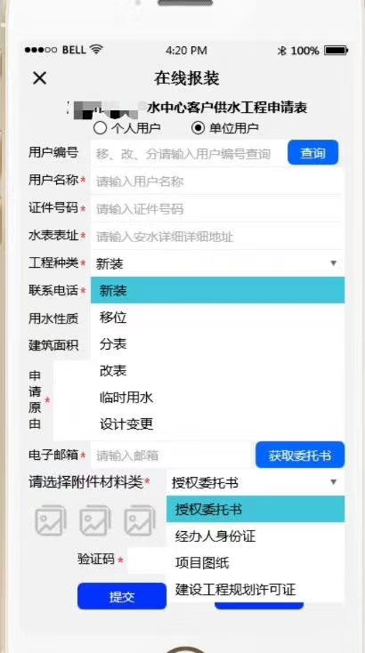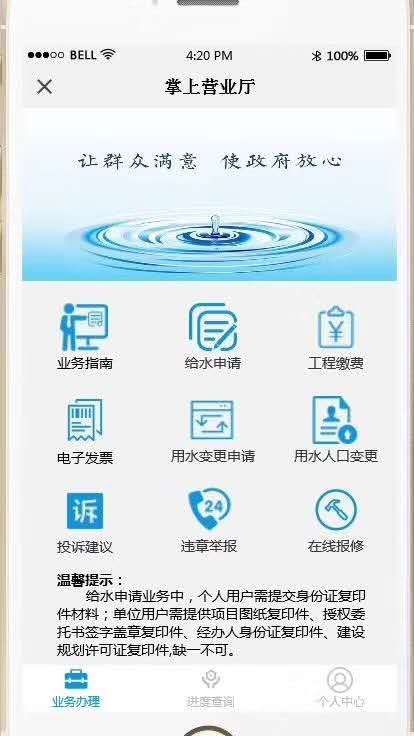 實(shí)現(xiàn)讓用戶(hù)“0跑腿”!為了居民更方便,我們也是用了洪荒之力!打造集綜合查詢(xún)和自助業(yè)務(wù)辦理為一體的網(wǎng)上營(yíng)業(yè)廳!集宣傳、形象、服務(wù)于一體的24小時(shí)智慧供水服務(wù)平臺(tái)。以實(shí)現(xiàn)在線(xiàn)辦理報(bào)裝、過(guò)戶(hù)、銷(xiāo)戶(hù)等業(yè)務(wù),用戶(hù)可實(shí)時(shí)查詢(xún)、及時(shí)反饋業(yè)務(wù)辦理情況,支持戶(hù)號(hào)、用戶(hù)地址等多種查詢(xún)方式,實(shí)現(xiàn)用戶(hù)業(yè)務(wù)自助辦理。通過(guò)流程再造,技術(shù)分析等實(shí)現(xiàn)個(gè)人單位事項(xiàng)全覆蓋,繳費(fèi)開(kāi)票更便捷!讓您一機(jī)在手,方便所有!有想法的水司可以約起來(lái)哦!