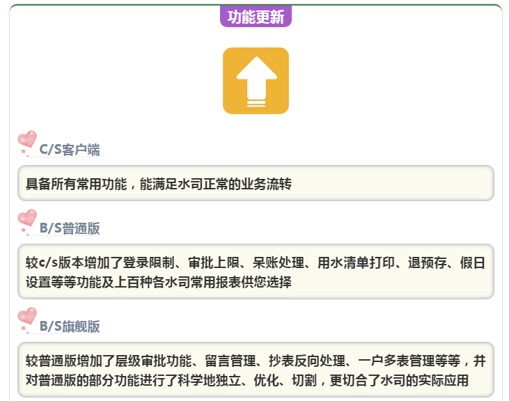 支持基本水價(jià)、階梯水價(jià)、二次加壓價(jià),季節(jié)性加價(jià)、計(jì)劃用水加價(jià)等,價(jià)格分類及價(jià)格組成均可自由擴(kuò)展。